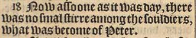 18 Now assoone as it was day, there was no smal stirre among the souldiers, what was become of Peter.