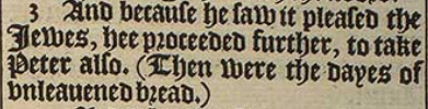 3 And because he saw it pleased the Iewes, hee proceeded further, to take Peter also. (Then were the dayes of vnleauened bread.)