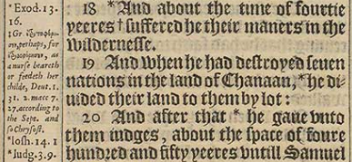 20 And after that *he gaue vnto them iudges, about the space of foure hundred and fifty yeeres vntill Samuel the Prophet.[*Iudg.3.9.]