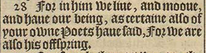 28 For in him we liue, and mooue, and haue our being, as certaine also of your owne Poets haue said, For we are also his offspring.