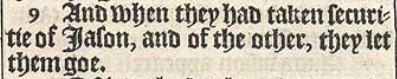9 And when they had taken securitie of Iason, and of the other, they let them goe.