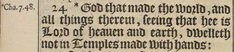 24 *God that made the world, and all things therein, seeing that hee is Lord of heauen and earth, dwelleth not in Temples made with hands: [*Cha. 7.48.]