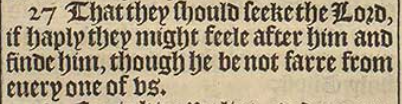 27 That they should seeke the Lord, if haply they might feele after him and finde him, though he be not farre from euery one of vs.