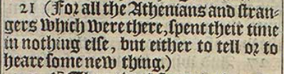 21 (For all the Athenians and strangers which were there, spent their time in nothing else, but either to tell or to heare some new thing.)