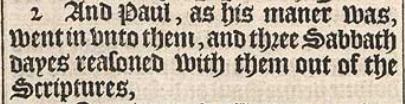 2 And Paul, as his maner was, went in vnto them, and three Sabbath dayes reasoned with them out of the Scriptures,