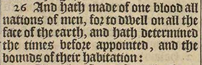 26 And hath made of one blood all nations of men, for to dwell on all the face of the earth, and hath determined the times before appointed, and the bounds of their habitation: