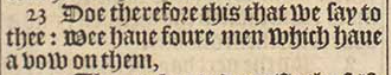 22 Doe therefore this that we say to thee: Wee haue foure men which haue a vow on them,