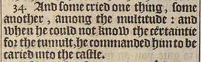 34 And some cried one thing, some another, among the multitude: and when he could not know the certaintie for the tumult, he commanded him to be caried into the castle.
