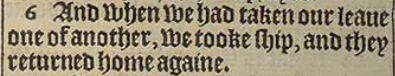 6 And when we had taken our leaue one of another, we tooke ship, and they returned home againe.