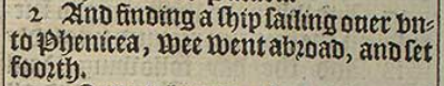 2 And finding a ship sailing ouer vnto Phenicea, wee went abroad, and set foorth.