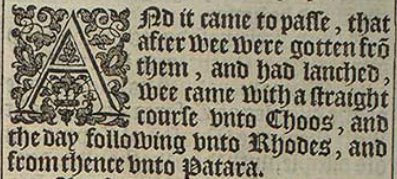 1 And it came to passe, that after wee were gotten frō them, and had lanched, wee came with a straight course vnto Choos, and the day following vnto Rhodes, and from thence vnto Patara.