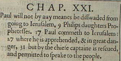 Paulus will sich auf keinen Fall davon abbringen lassen, nach Jerusalem zu gehen. 9 Philips Töchter Prophetinnen. 17 Paulus kommt nach Jerusalem: 27 Wo er verhaftet wird und in großer Gefahr ist, 31 aber durch den obersten Hauptmann gerettet wird und zu den Leuten sprechen darf.