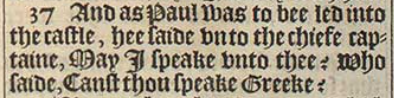 37 And as Paul was to bee led into the castle, hee saide vnto the chiefe captaine, May I speake vnto thee? Who saide, Canst thou speake Greeke?