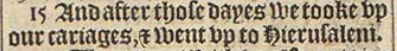 15 And after those dayes we tooke vp our cariages, & went vp to Hierusalem.