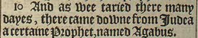 10 And as wee taried there many dayes, there came downe from Iudea a certaine Prophet, named Agabus.