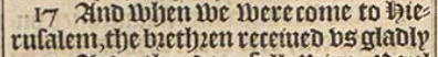 17 And when we were come to Hierusalem, the brethren receiued vs gladly