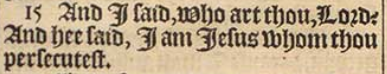 15 And I said, Who art thou, Lord? And hee said, I am Iesus whom thou persecutest.