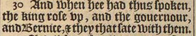 30 And when hee had thus spoken, the king rose vp, and the gouernour, and Bernice, & they that sate with them.