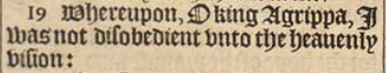 19 Whereupon, O king Agrippa, I was not disobedient vnto the heauenly vision: