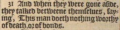 31 And when they were gone aside, they talked betweene themselues, saying, This man doeth nothing worthy of death, or of bonds.