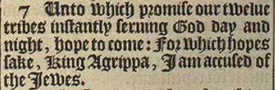 7 Vnto which promise our twelue tribes instantly seruing God day and night, hope to come: For which hopes sake, King Agrippa, I am accused of the Iewes.