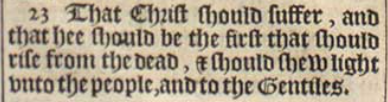 23 That Christ should suffer, and that hee should be the first that should rise from the dead, & should shew light vnto the people, and to the Gentiles.