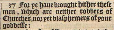 37 For ye haue brought hither these men, which are neither robbers of Churches, nor yet blasphemers of your goddesse: