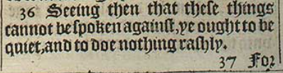 36 Seeing then that these things cannot be spoken against, ye ought to be quiet, and to doe nothing rashly.