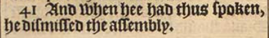 41 And when hee had thus spoken, he dismissed the assembly.