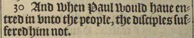 30 And when Paul would haue entred in vnto the people, the disciples suffered him not.