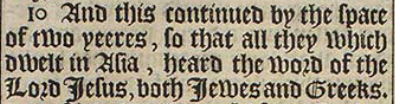 10 And this continued by the space of two yeeres, so that all they which dwelt in Asia, heard the word of the Lord Iesus, both Iewes and Greeks.