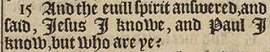 15 And the euill spirit answered, and said, Iesus I knowe, and Paul I know, but who are ye?