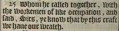 25 Whom he called together, with the workemen of like occupation, and said, Sirs, ye know that by this craft we haue our wealth.