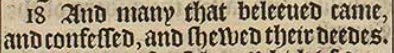 18 And many that beleeued came, and confessed, and shewed their deedes.