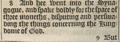 8 And hee went into the Synagogue, and spake boldly for the space of three moneths, disputing and perswading the things concerning the Kingdome of God.