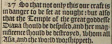 27 So that not only this our craft is in danger to be set at nought: but also that the Temple of the great goddesse Diana should be despised, and her magnificence should be destroyed, whom all Asia, and the world worshippeth.