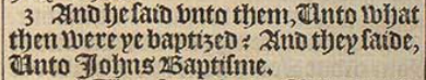 3 And he said vnto them, Unto what then were ye baptized? And they saide, Unto Iohns Baptisme.