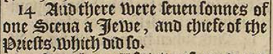 14 And there were seuen sonnes of one Sceua a Iewe, and chiefe of the Priests, which did so.