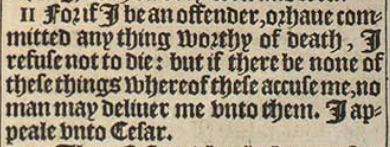 11 For if I be an offender, or haue committed any thing worthy of death, I refuse not to die: but if there be none of these things whereof these accuse me, no man may deliuer me vnto them. I appeale vnto Cesar.
