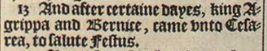 13 And after certaine dayes, king Agrippa and Bernice, came vnto Cesarea, to salute Festus.
