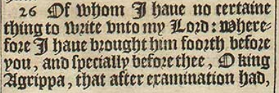 26 Of whom I haue no certaine thing to write vnto my Lord: Wherefore I haue brought him foorth before you, and specially before thee, O king Agrippa, that after examination had, I might haue somewhat to write.