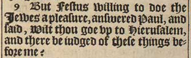 9 But Festus willing to doe the Iewes a pleasure, answered Paul, and said, Wilt thou goe vp to Hierusalem, and there be iudged of these things before me?