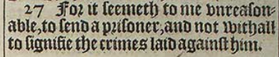 27 For it seemeth to me vnreasonable, to send a prisoner, and not withall to signifie the crimes laid against him.