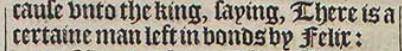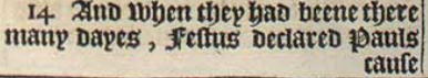 14 And when they had beene there many dayes, Festus declared Pauls cause vnto the king, saying, There is a certaine man left in bonds by Felix:
