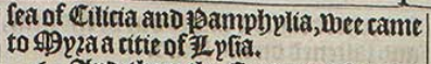 5 And when we had sailed ouer the sea of Cilicia and Pamphylia, wee came to Myra a citie of Lysia.