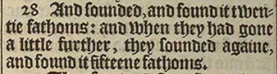 28 And sounded, and found it twentie fathoms: and when they had gone a little further, they sounded againe, and found it fifteene fathoms.