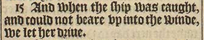 15 And when the ship was caught, and could not beare vp into the winde, we let her driue.