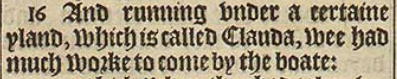 16 And running vnder a certaine yland, which is called Clauda, wee had much worke to come by the boate: