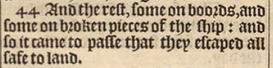 44 And the rest, some on boords, and some on broken pieces of the ship: and so it came to passe that they escaped all safe to land.