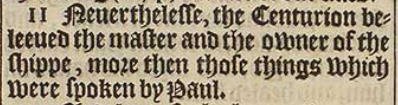 11 Neuerthelesse, the Centurion beleeued the master and the owner of the shippe, more then those things which were spoken by Paul.